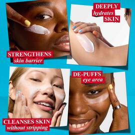 - Bei Pflegeprodukten für trockene Haut stehen reichhaltige Feuchtigkeit und geschmeidige Haut im Vordergrund.